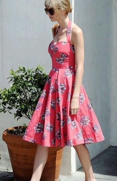 特别致的50年代复古印花A字裙是泰勒·斯威夫特的风格。