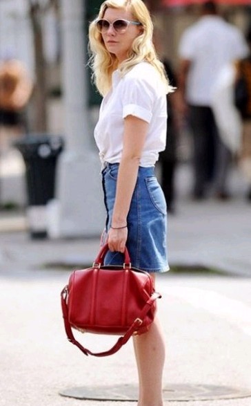 是的,克尔斯滕·邓斯特,我们在看你呢!浅色棉质上衣配牛仔裤,再加上复古高跟凉鞋,这身装扮简直是初秋着装的经典搭配!通过这些块高跟凉鞋的复古牛仔裙从最简单的棉布衬衫,这件衣服简直是夏天完美。