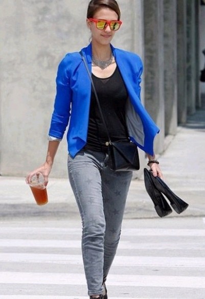 杰西卡·奥尔芭打出了亮色墨镜搭配牛仔的安全牌。