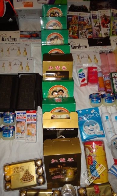 烟:就是出入境的时候在免税店买的~Marlboro是215元一条吧。港喜是130元。金色港喜是80元。不过听朋友说澳门过关的免税店更便宜哦·Marlboro 都是150元。我是听说的!我那天从澳门回来晚了就冒在澳门买!