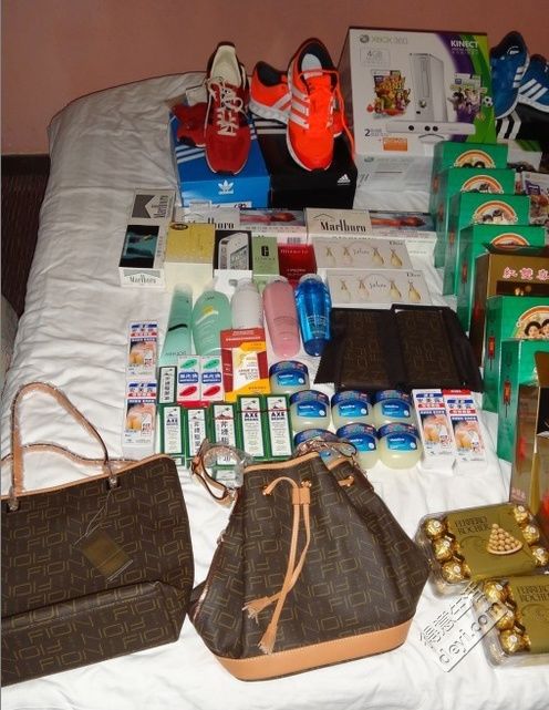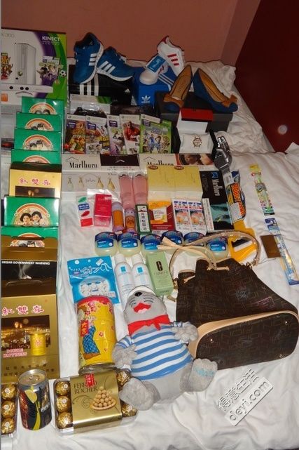 就是鞋子和衣服(没晒)是在澳门那边买的。其他都是香港买的!
