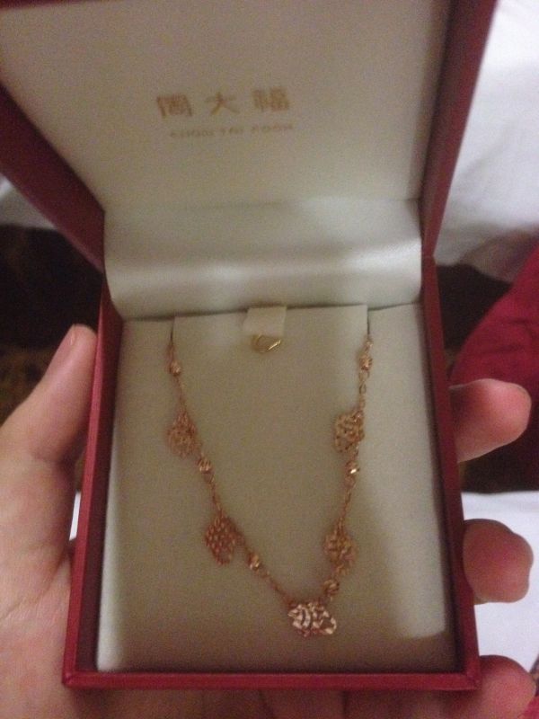 在的周大福收获也挺多~姐姐帮妹妹带的金链子~帮同事妈妈带的手链好好看的说,回头拍了再补上~妈妈也买了些
