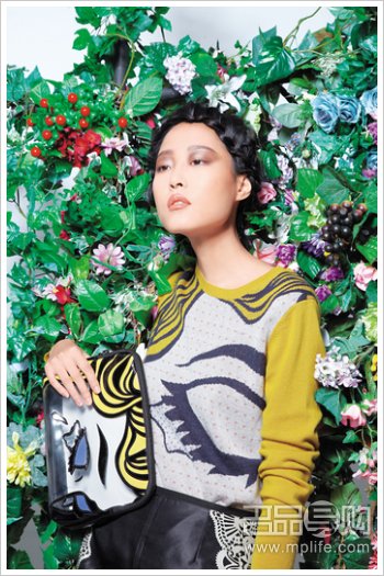 彩色针织人像图案上衣 $4,590 彩色人像图案透明拉链clutch bag $3,990 (both from 3.1 Phillip Lim) Tory Burch黑色缀白色通花蕾丝短裙 (售价待定)