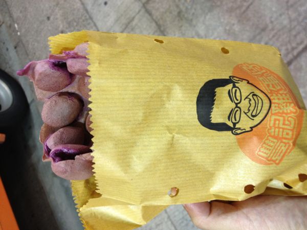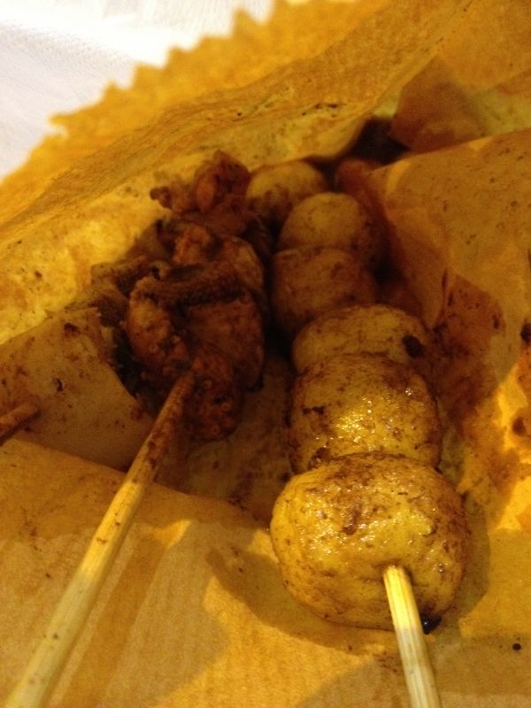 半夜回酒店时一个路边摊的大爷,好多本地人买,我就凑了热闹吃了咖喱鱼丸,百叶,鱿鱼爪
