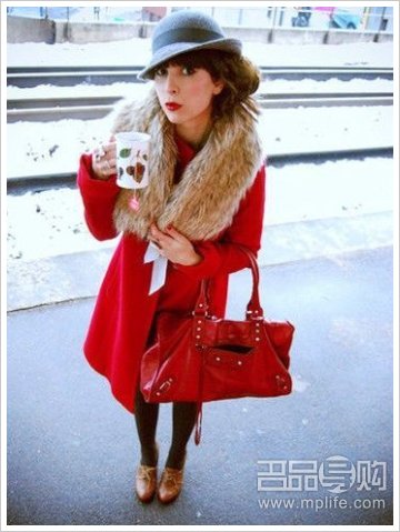 红色balenciaga超级美的,和大衣一样很有新年气氛。