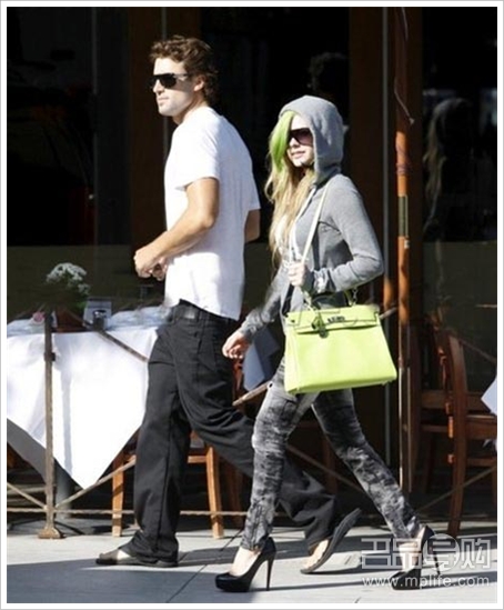 小魔女Avril Lavigne的苹果绿Kelly在街头抢尽眼球,两用的肩带也为她活泼好动的性格提供了便捷。
