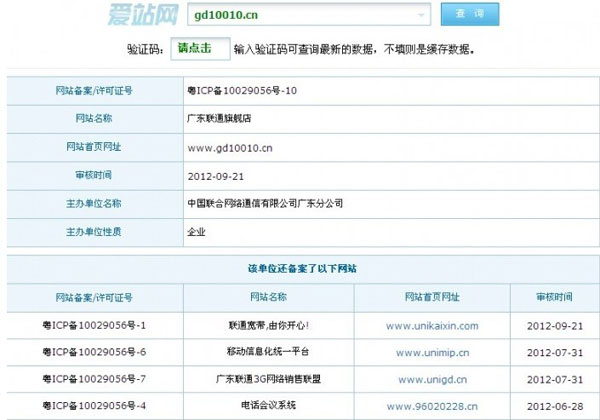 为验证该网站的真伪,维维网查询该网站的备案信息显示其主办单位是中国联合网络通信有限公司广东分公司,网站名称是广东联通旗舰店。