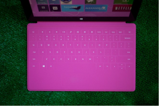 接下来我们看看3mm的超薄Touch Cover键盘。自从Surface亮相以来,人们对它疑虑纷纷。它是否真的那么容易打开和关闭?它好用吗?它真的能用吗?这些问题的答案都是“是的”。实际上这个微型键盘相当美妙,虽然没有实际的物理按键,但你可以打字如飞,输入时不会有滞后现象。但是你也要需要一些时间来习惯它。