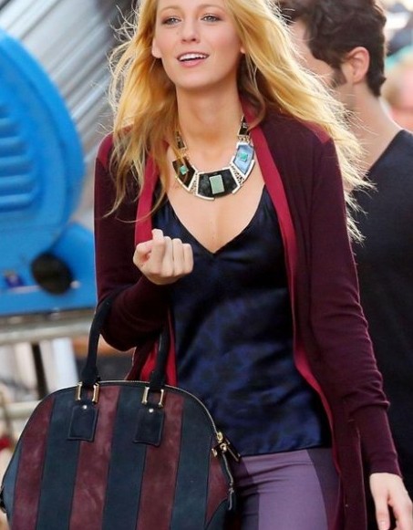 Blake Lively先前于Gossip Girl 拍摄现场,手中提的正是 Burberry Orchard 麂皮条纹包款。不同顏色的条纹灵感源自马术比賽中不同颜色的马缰绳,同时充分展现英式学院风格。