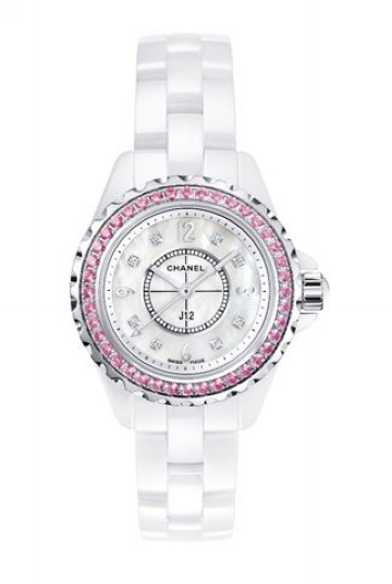 J12 白色镶嵌粉红蓝宝腕表