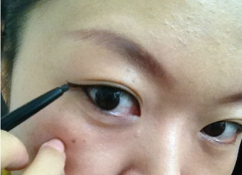 下图是描完眼线的图,貌似太大,囧~勉强看吧。