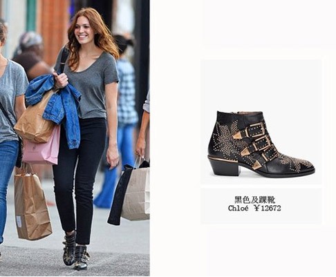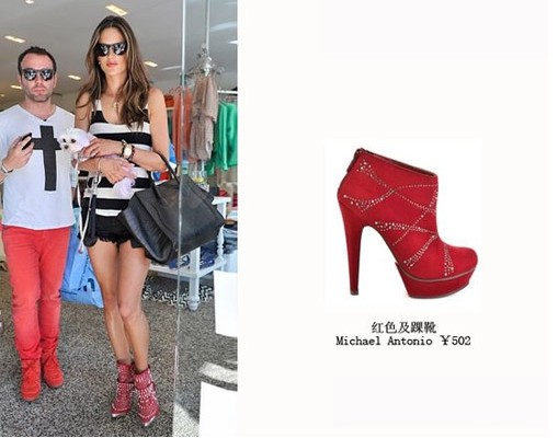 安布罗休(Alessandra Ambrosio)超模踩铆钉靴出街更为犀利,增添粗犷的美感。