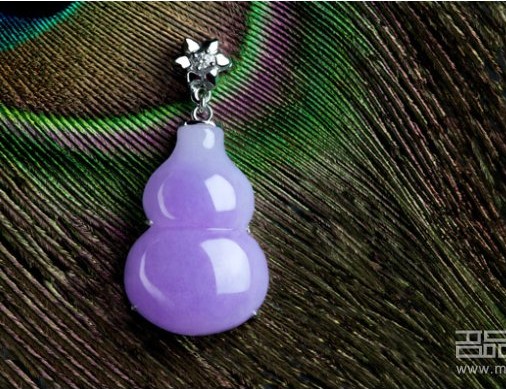 紫罗兰翡翠充满了魅惑的淡雅之美,彰显品位。翡翠的天然色泽与质感将紫色的魅惑彰显到极致,让这种美得以永恒的延续。蕴含福禄寓意的葫芦造型别致俏丽,天然的紫色翡翠更是诠释了东方女性贵气脱俗的气质。戴上它,在洁白婚纱的映衬下,成为婚礼上瞩目的焦点。