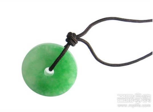 从翡翠手镯中间套出的镯芯料,做成的大平安扣,因和手镯同料同心,而成为送给新郎的最好礼物,寓意平平安安,新人永结同心。