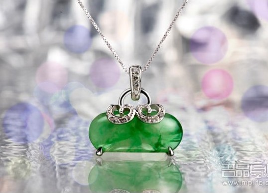 如果你是新娘的姐妹或闺蜜,可为她挑选“都市手袋”吊坠。马鞍形的翡翠吊坠,衬托出都市女性的干练,复古的18K金镶嵌钻石的祥云圆圈,祝福新人和和美美、共度新婚。