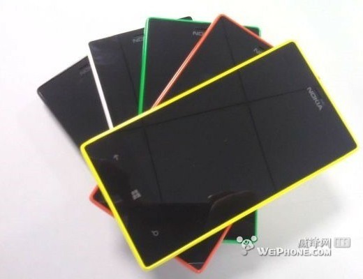 通过照片我们能够看到,Lumia 830 的外形与 HTC 8X、Lumia 920 都有些类似。总共有五种配色:黑、白、绿、红、黄。由这样的设计来看,Lumia 830 应该是不支持换壳的。