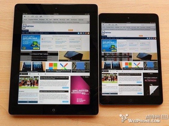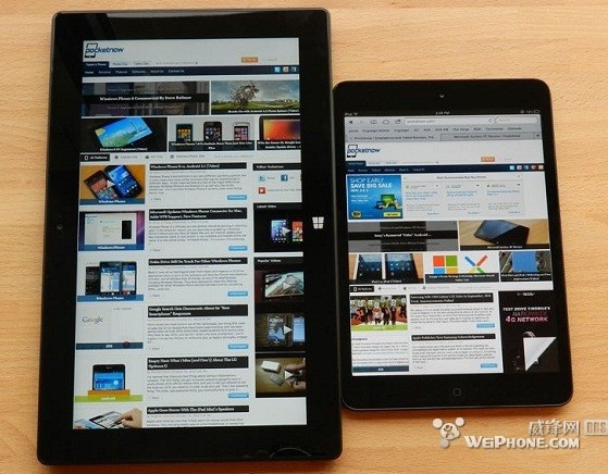 在和微软的10.6英寸 Surface RT 对比时,iPad mini 的便携优势更加明显,放入大衣口袋毫无压力,但是 Surface 就有些难度了。不过,Surface 的商务型更强一些。