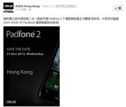 就在前天曝出了关于华硕PadFone 2将要在大陆地区上市的消息后,目前华硕官方也已经在其官方博客中透露了PadFone 2将于下周在香港上市的消息。