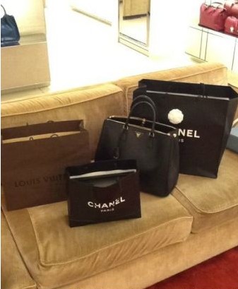 买了classic flap之后,又买了一个chanel的山茶花平底鞋,照片一会儿再发给大家看。所以是购物袋依次增加。