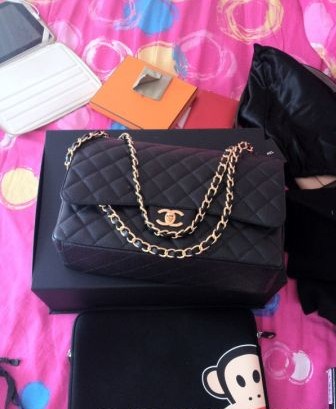 买了一个chanel classic flap,maxi最大号。我个人觉得maxi最大号都放不了什么东西,只能放一个化妆包,悲催吧。