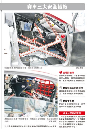 曾驾驶同型号战车的香港车手欧阳若曦指出,按赛例,车厢内需设防滚架,外形有如铁笼的防滚架可防止车身因撞击变形,压伤车手。此外,车厢内设有多项安全设施,车手亦须配戴保护装备,因此理论上安全,车祸致命原因需待调查。