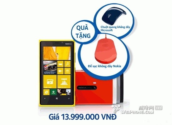 官网信息显示,Lumia 920 裸机售价为 13999000 越南盾。虽然数字吓人,但折合为人民币就亲切多了:约 4200 元。据悉,在 11 月 26 日至 12 月 9 日预订 Lumia 920 还将获赠无线充电面板和微软无线鼠标各一个,总的来说还是非常超值的。