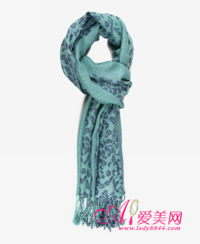 豹纹图案的围巾,底部细碎的流苏装饰,质地轻盈。