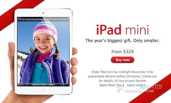 虽然黑色星期五已经过去了几天,但是苹果官网上那些带有节日气氛的界面的文字依然没有退去。也许有人早已经注意到,但也许还是有许多眼不够尖的朋友没看到苹果在线商店上的这样一条信息:12 月 5 日(半夜)之前对 iPad mini 下订单的用户可以在圣诞节之前收货。