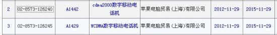 11月29日下午消息,苹果iPhone 5今日下午获得了工信部入网许可,其中包括支持WCDMA制式以及CDMA2000两种版本,行货iPhone 5上市在即。在电信设备进网管理网站上,两款iPhone 5赫然在列,其中设备型号为A1429为支持WCDMA制式版本,而A1442为支持cdma2000制式版本,两个型号分别对应中国联通以及中国电信两大运营商。