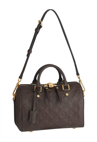 在保留标志性外型的同时,Speedy 25肩带手袋吸收了一些Monogram Empreinte系列的典型细节:尤以拉链的独特拉手以及大气的金色黄铜铆钉而著称。