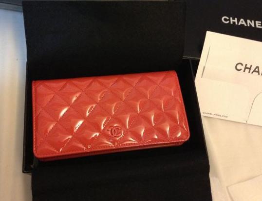 在chanel看到一款钱包心水不已居然没货,说样品不卖!害得我接下来的好几天都在寻找这款钱包,最后购于海港城chanel,只此一个了。好开心~2013限量版蜜桃色漆皮两折钱包HK$6800