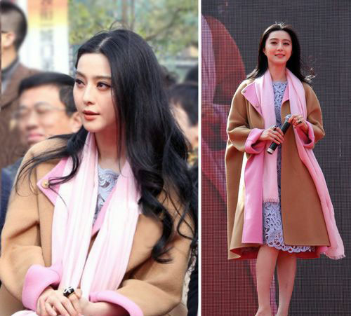 作为焦点人物的范冰冰一向天南地北四处游走,参加《武则天》拍摄启动发布会的同时,还现身某豪宅活动,为商家撑场拉人气。范冰冰这次的装扮同样温婉迷人,驼色的大衣倍显气质,里面穿搭灰色镂空花纹裙装及粉色围巾,显得俏丽迷人姿态万千。如此温婉造型,再搭配一款细链精钢表,那更是美艳无双。