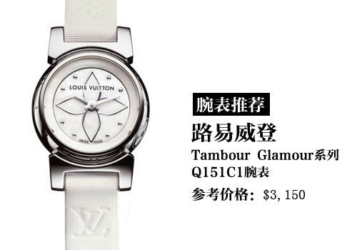 相信编辑推荐的这款LV白色细带腕表,更能掳获女性的芳心。与范冰冰佩戴的黑色腕表款式相当,却以通体的白色,散发出夺人视线的纯美气质,以这款腕表凸显女性温婉柔美正是最佳之选。腕表的设计简约时尚,标志性的LV图案位居表盘正中央,显示着时尚DNA的不俗魅力,简约的立体圆形时标,更将时间的内敛及气度完美诠释,自然叫人爱不释手。