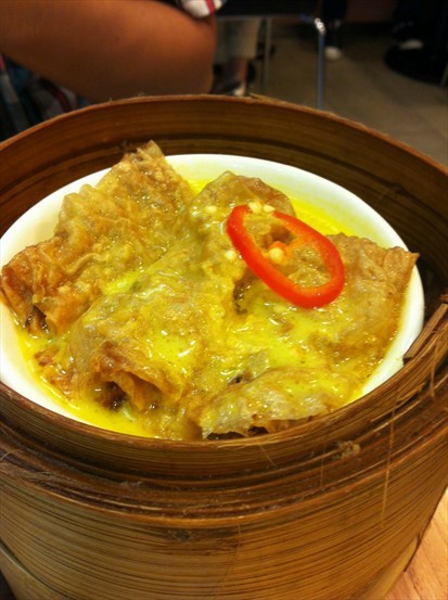 跟著個潮州粉果同個腐皮牛肉卷系一次上ge~張臺太細啦~所以四個點心一起就基本無位置啦~潮州粉果,好多蘿蔔同花生,個皮唔同之前酒樓食ge,應該系麵粉唔同吧~牛肉卷,發覺原來D黃色醬系curry~好特別,第一次食~而且牛肉好新鮮,好味~