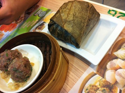 過多5mins,啊姐幫我地收拾佐D碟,就幫我地上佐個牛肉球14hkd同個古法糯米雞25hkd,哇,個糯米雞真系好大啊~