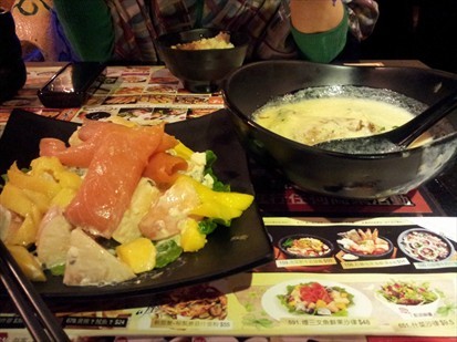 三文鱼鲜果沙律 - $ 48 只系得相片中的一半份量,同服务员讲, 佢同我地讲 : 系咁架LA...~_~