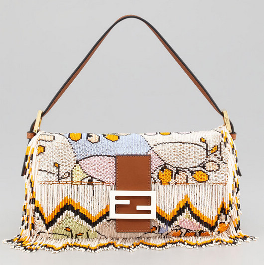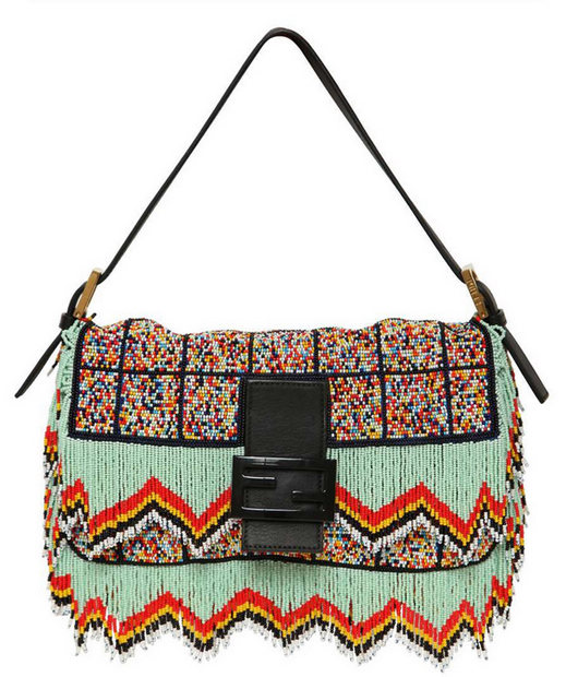 Fendi2013春夏系列手袋,走的是狂野的部落风情,而且并没有在省力哦,看了这些斑斓的色块、动感的流苏、多彩的珠珠装饰就知道。