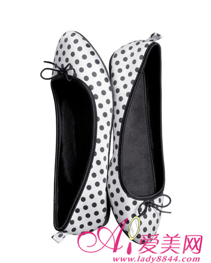黑圆点蝴蝶结平底鞋