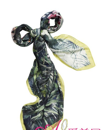 藏绿色印花丝巾