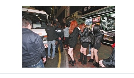 现场为科学馆道14号一间卡拉OK夜总会,被捕15名内地女子(年龄由21至35岁),皆持双程证赴港;至于3名未成年少女(分别16和17岁),警方其后通知她们家长到警署接走。