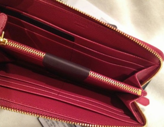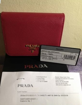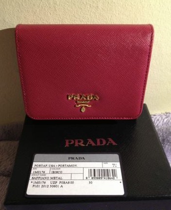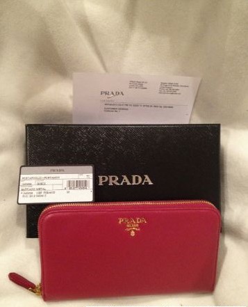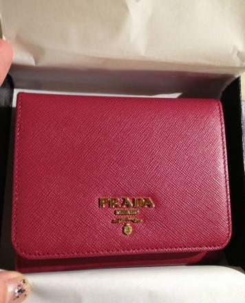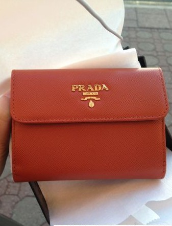 我家亲最爱的Prada的橙色小钱包 自己也买了一个 玫红的 爱啊