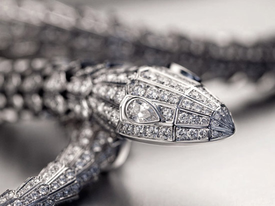Serpenti系列顶级珠宝项链的制作技艺与BVLGARI宝格丽传统珠宝系列一脉相承,均采用贵金属结构,以失蜡法手工铸造。项链的精致蛇头由技艺精湛的BVLGARI宝格丽珠宝制作师饰以密镶钻。