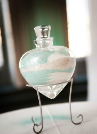 心型瓶子,白沙和Tiffany蓝沙都是网购来的,心型瓶上有刻字,相片上看不出来,很遗憾