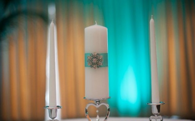 同心烛中间的Tiffany蓝的宽丝带是楼主自己弄上去的,厉害吧!