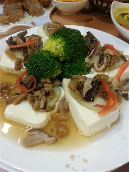卖相很娟好的一道, 一件件的豆腐砖围着中间的几棵西兰花铺了一圈,豆腐上铺上了五彩缤纷的配料,都是切成丝或粒的, 奇妙的是一口吃掉一半的豆腐连配料, 最突出的竟是那嫩滑无比的豆腐,这一点还真的有惊喜,可算是第一次吃到如此嫩口的豆腐, 据闻用上的是有机的豆腐,配上咸香的简单配料, 是一道清新怡人而健康的一道,很值得一试。
