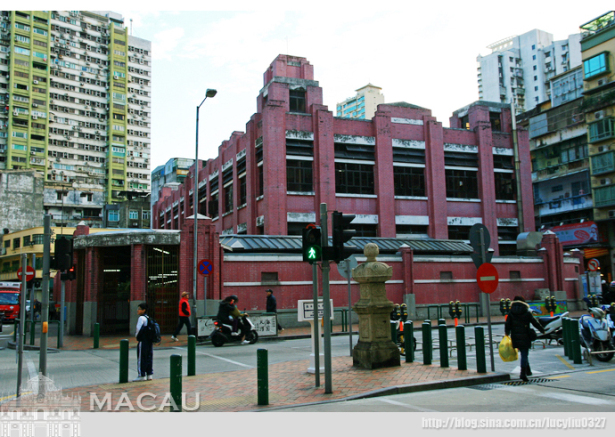 04 红街市(高士德马路与提督马路交界处)建于上世纪30年代,是澳门目前惟一被列为文物的街市建筑。如今它是一个菜市场,在市场周围的横街窄巷里有无数的商铺和小贩摊位,这一带是体验澳门人市井集市生活的最佳地点之一。红街市因建筑物外墙为红色而得名,被设计成一幢纪念碑式的建筑物,两层高的街市空间仅仅是它的高台,屋顶正中央十字形的建筑量体是它的底座,在其上矗立的高耸塔楼就是纪念碑。
