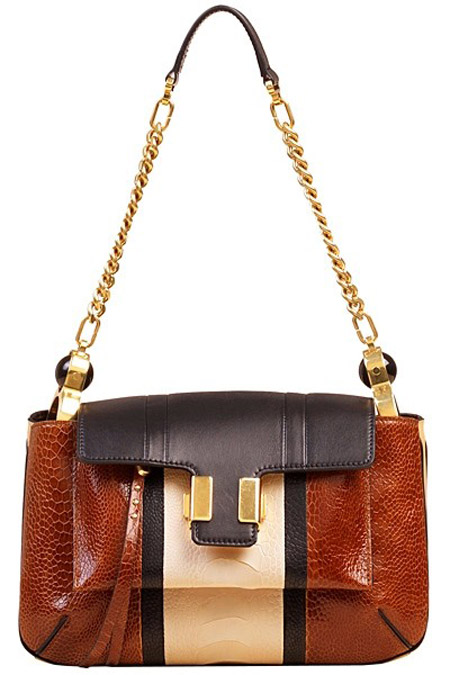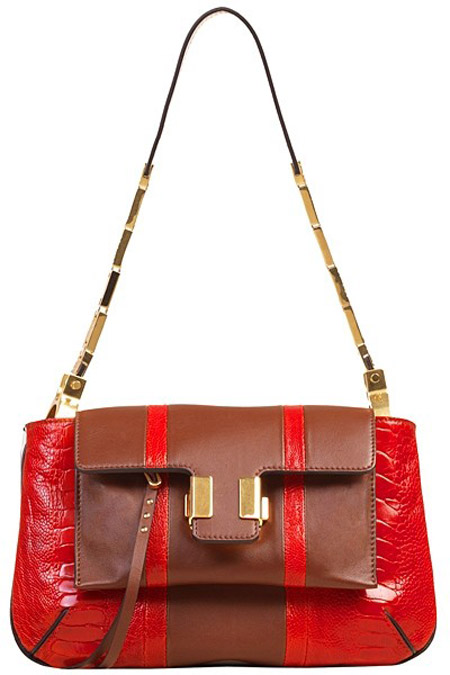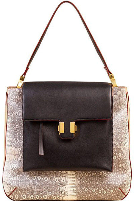 Chloé 2013春夏系列手袋中,大量运用的深红色与米色结合了女性妖娆与素雅的两面,立体皮革的加入让这些款式简单的斜跨包多了一份奢华高贵的气质。各种动物纹的皮革以及色彩的拼接使用更让这些包袋成为各种场合穿搭零撞包的款式。