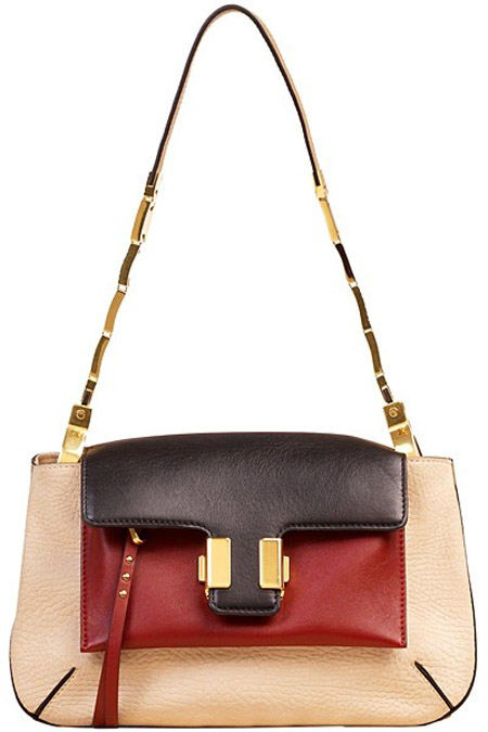 Chloé 2013春夏系列手袋中,大量运用的深红色与米色结合了女性妖娆与素雅的两面,立体皮革的加入让这些款式简单的斜跨包多了一份奢华高贵的气质。