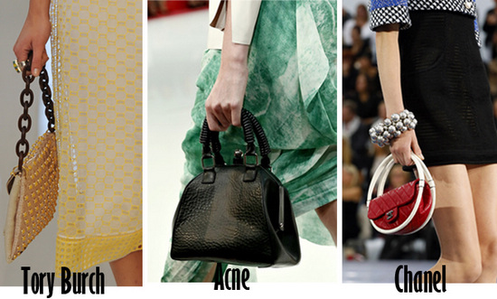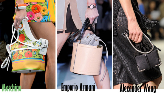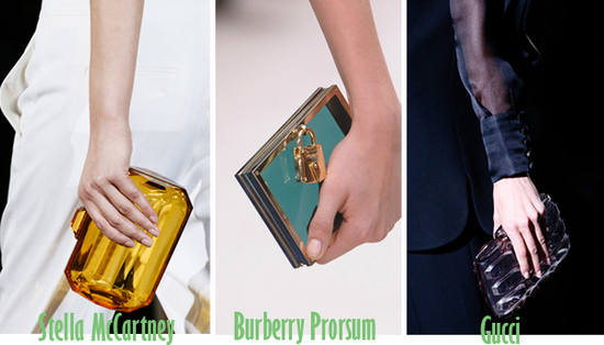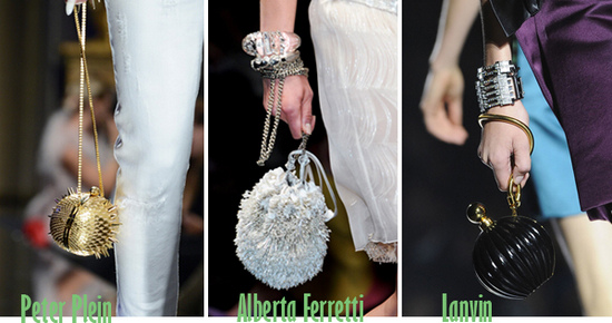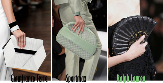 奇怪的形状的手拿包出现在拉尔夫劳伦、Sportmax、Giamfrance Ferre.