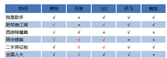 从测试结果来看,搜狗能够正确识别所有热词,并且有一半是云候选词;QQ输入法、百度输入法也有一半以上的词汇为云候选词;讯飞虽然没有云输入功能,但是强大的词库也帮助其在这次测试中表现优秀,触宝表现则略逊一筹。